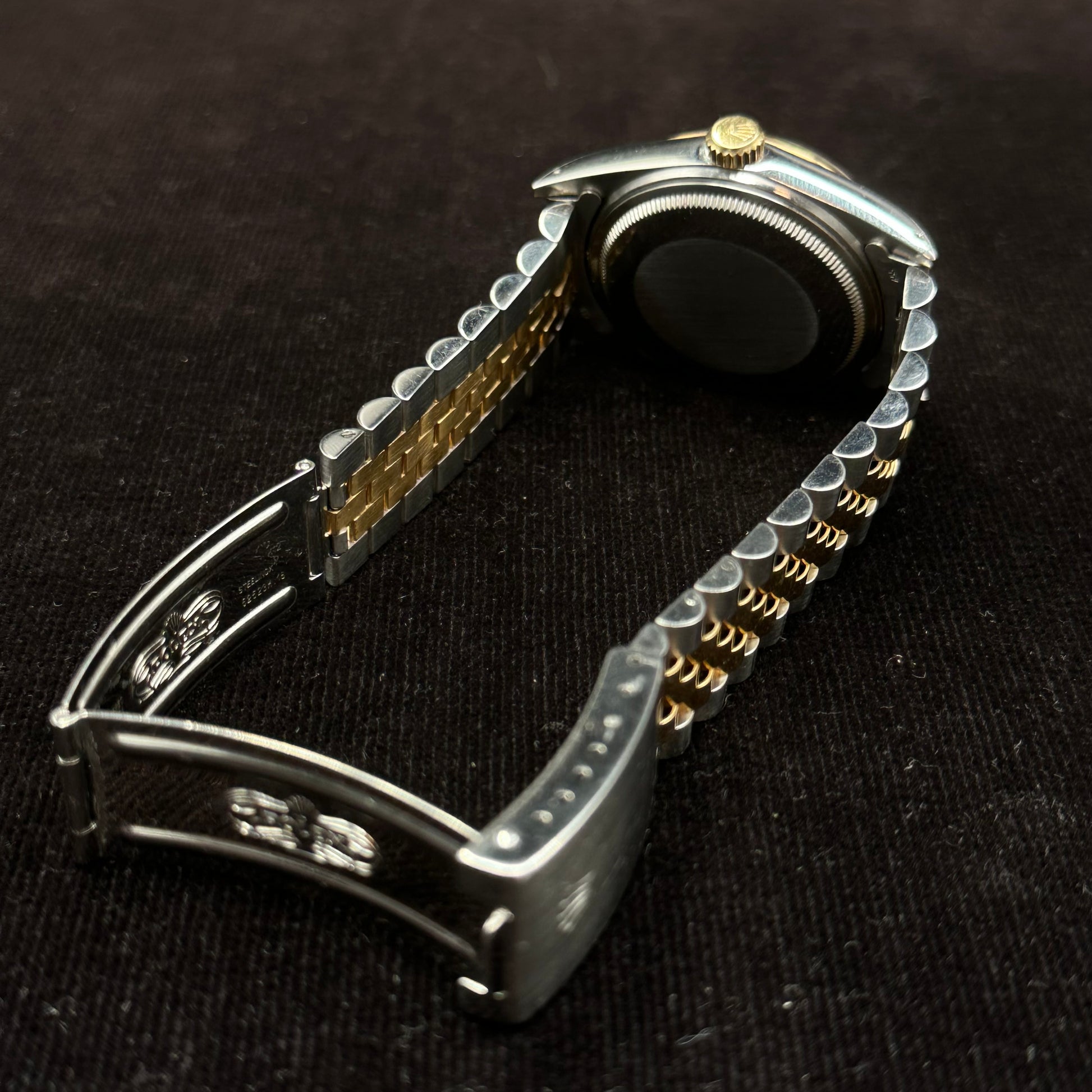 Zum Verkauf wird hier eine zeitlose Rolex 36mm Datejust Referenz 16013 in Stahl-Gelbgold mit champagnerfarbenem Zifferblatt angeboten.